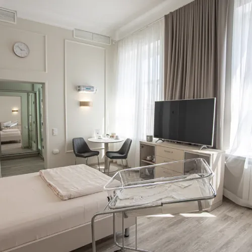 После родов вы и ваш новорожденный малыш будете переведены в отдельную послеродовую палату на оставшийся период пребывания. Мы знаем, что это особое время для вас, и хотим, чтобы вы чувствовали себя комфортно, поэтому в палатах создана семейная атмосфера, организовано совместное пребывание мамы и малыша. Это дает вам возможность укрепить эмоциональную связь с ребенком, почувствовать уверенность в себе, кормить и заботиться о новорожденном.